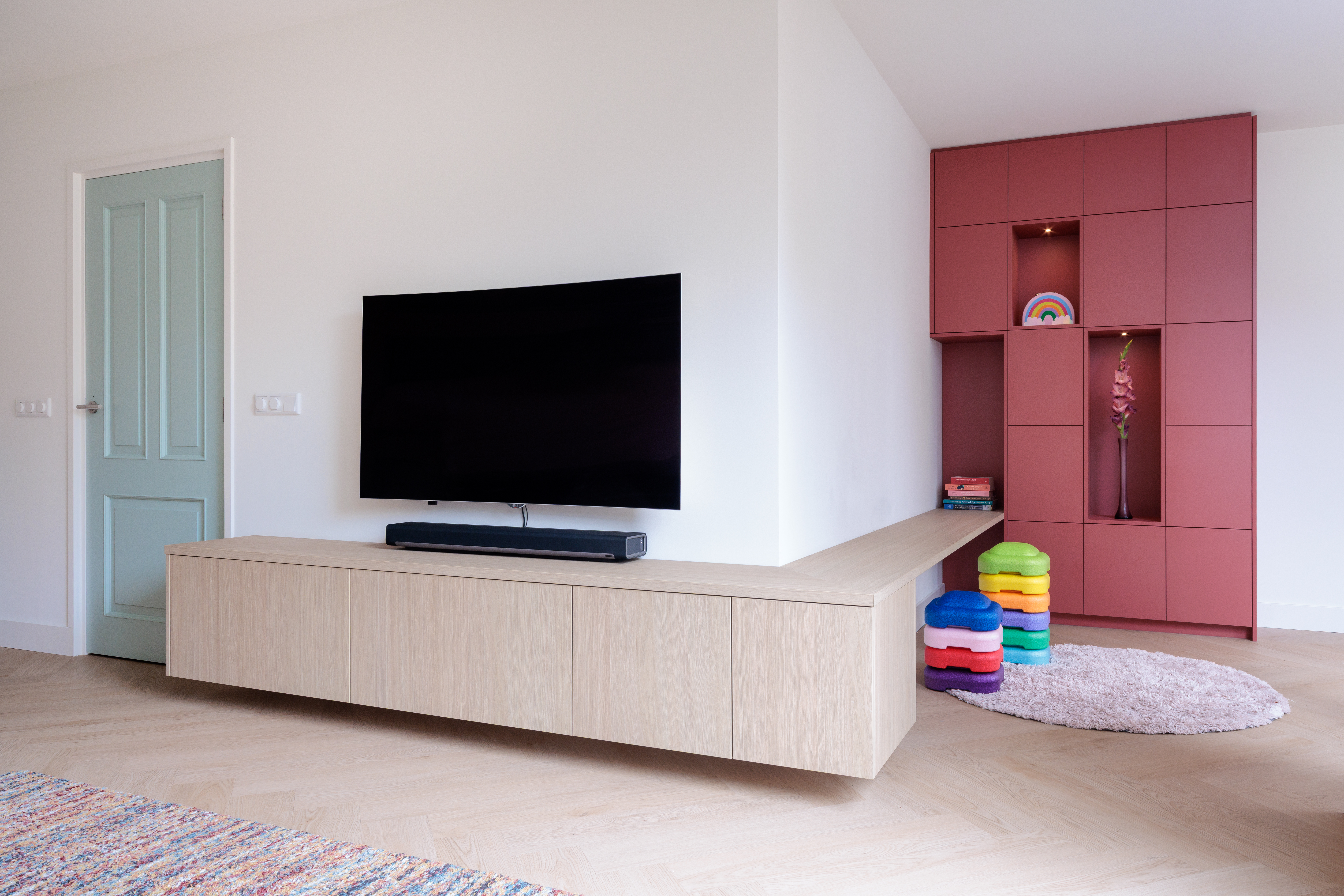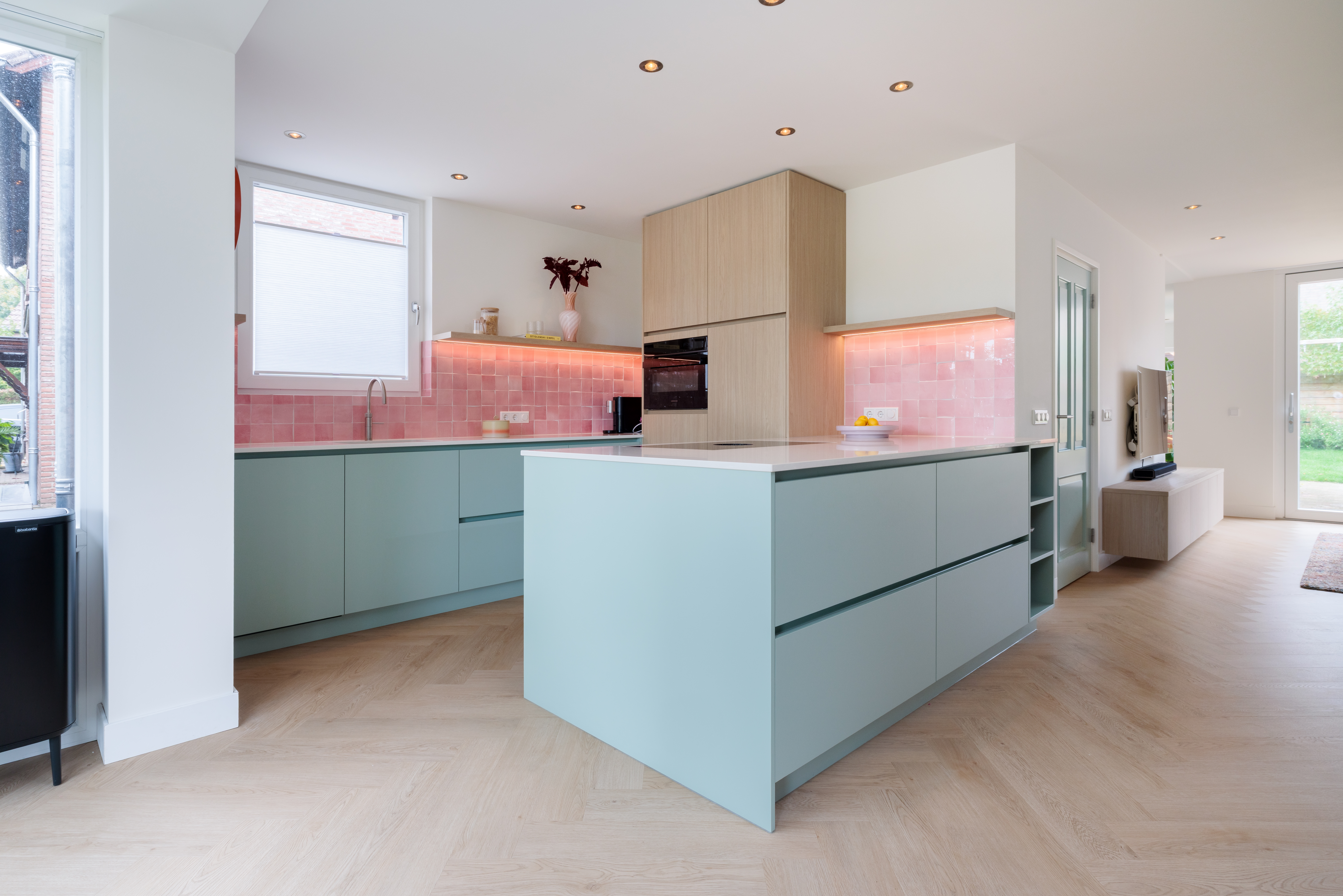 Dit jonge gezin droomde van een huis met meer licht en ruimte. Met de aanbouw van een erker aan de voorzijde én een compleet nieuwe indeling, (de keuken is verplaatst van de achterzijde naar de voorzijde van de woning) is er een moderne leefruimte gecreëerd met optimaal daglicht, open zichtlijnen en een warme, uitnodigende sfeer. De woning voelt nu ruimer, lichter en volledig toekomstproof.